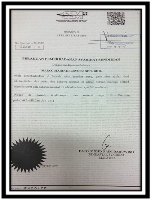 | Registered Name of The Company | MARCO MARINE SERVICES SDN.BHD. |